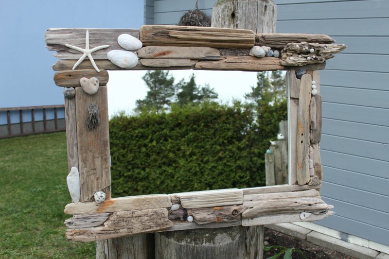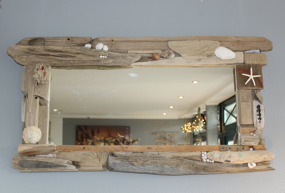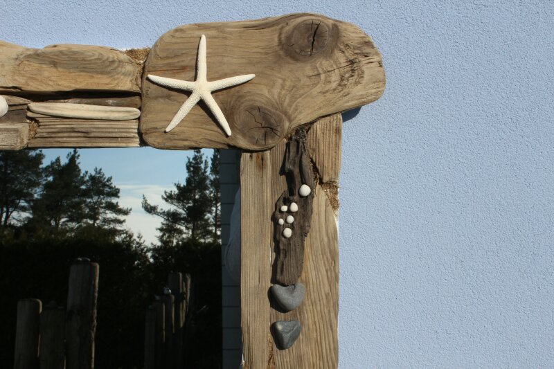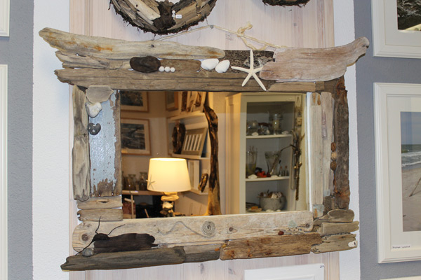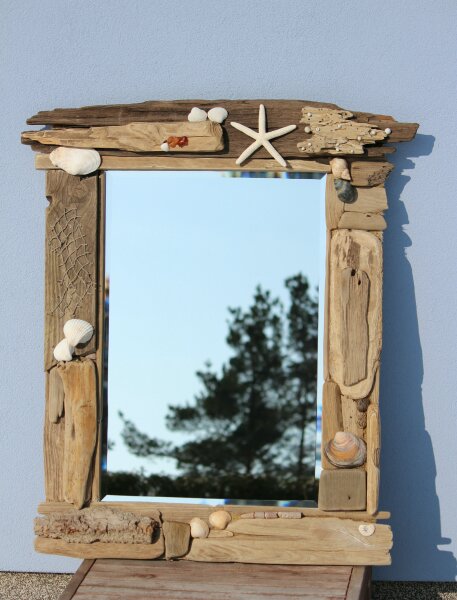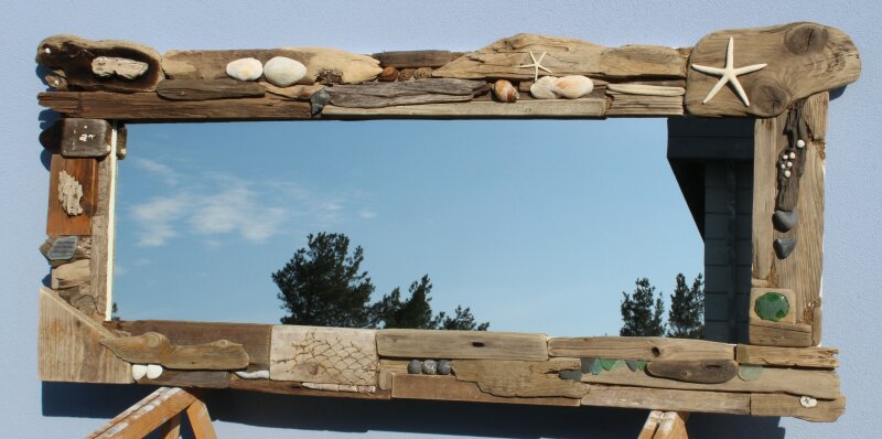 Spiegel mit Treibholz und anderen Strandfunden, 82x63 cm (BxH)