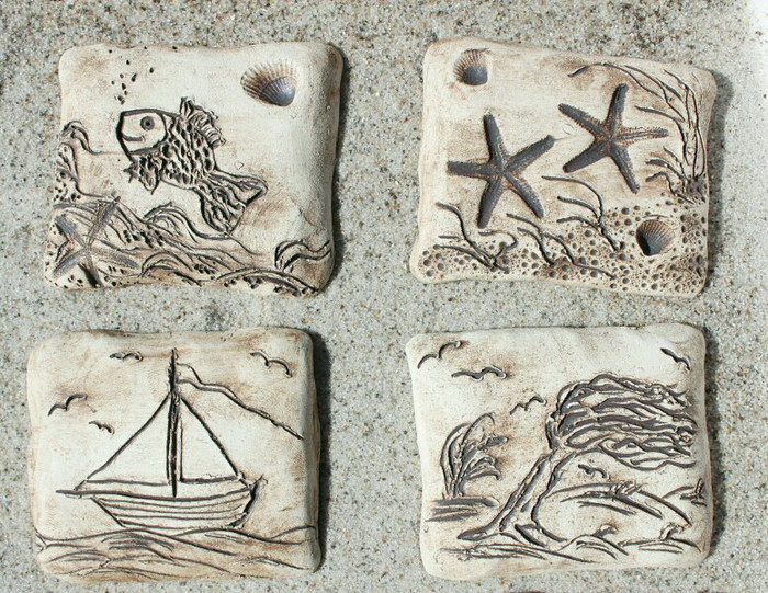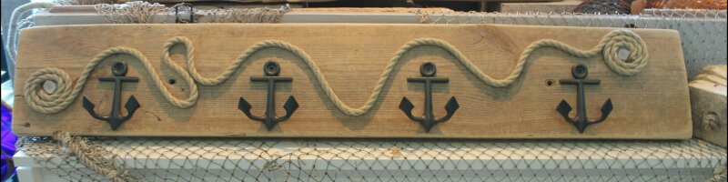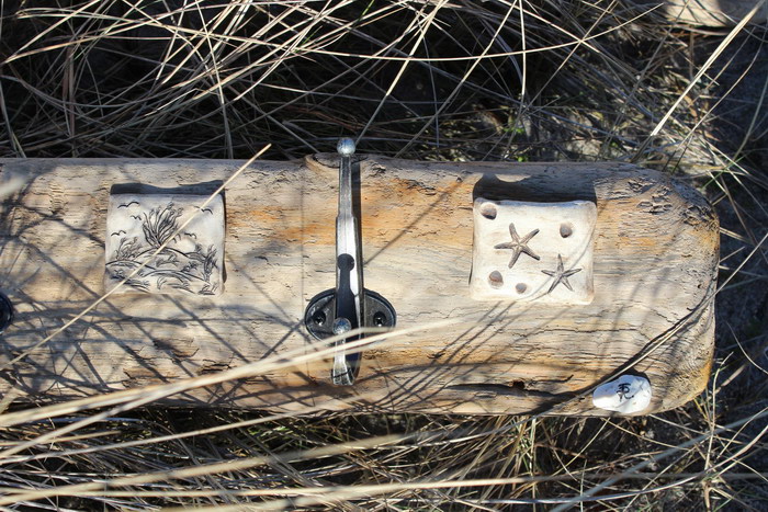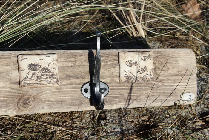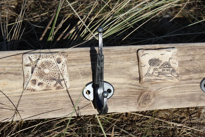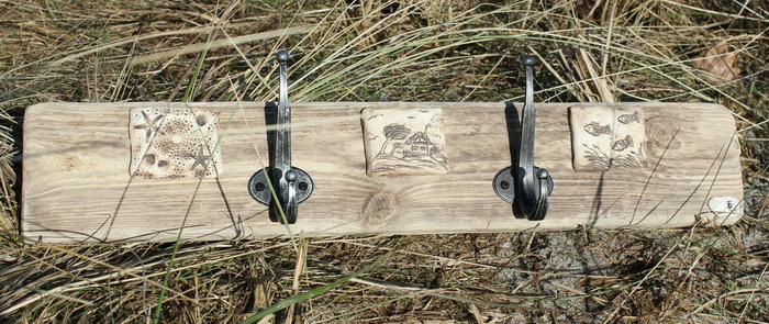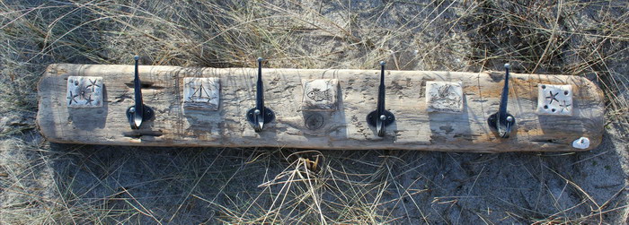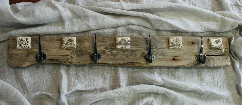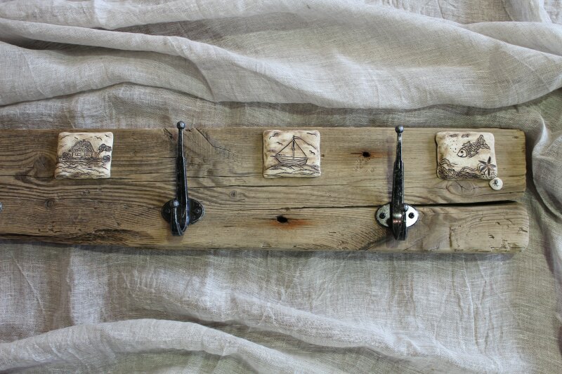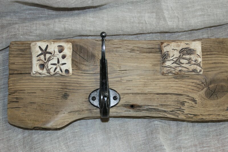mit handgetöpferten Fliesen aus Ton, maritime Motive, Haken aus Aluminium