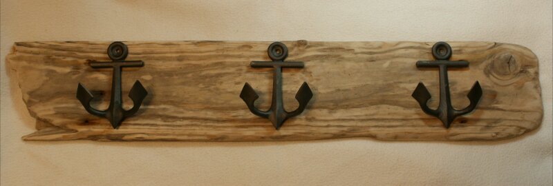 aus Treibholz, ca. 984x18x3,5 cm, 2 schmiedeeiserne Wandhaken,